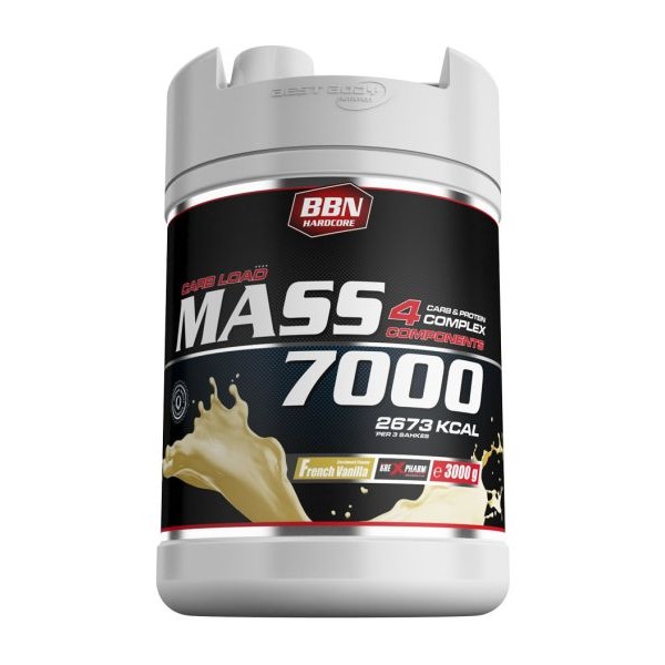 BBN Hardcore Mass 7000 de Best Body Nutrition es un suplemento ganador de peso en polvo para un rápido desarrollo de la masa muscular que combina una matriz de 4 carbohidratos (maltodextrina, dextrosa, avena y almidón de maíz) con un complejo proteico de 4 fuentes de proteína (proteína de suero de leche, proteína de leche, proteína de huevo y proteína de soja aislada) optimizado con creatina y zinc.