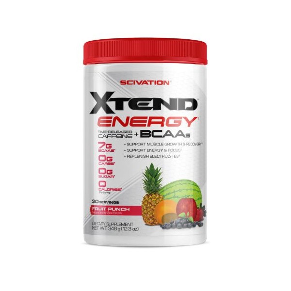 Xtend™ Energy de Scivation es un suplemento en polvo que proporciona 7 gramos de BCAAs, 1 g de malato de citrulina, una mezcla de electrolitos y un complejo especial diseñado para proporcionarte una intensa energía de rápida y larga duración.