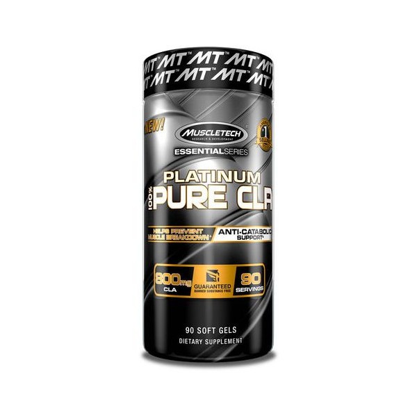 Platinum 100% Pure CLA dentro de la línea Essential Series de la marca Nº1 en todo el mundo Muscletech® es un suplemento enperlas que proporciona 800 mg de ácido linoleico conjugado ultra puro (CLA) por dosis de 1 perla.