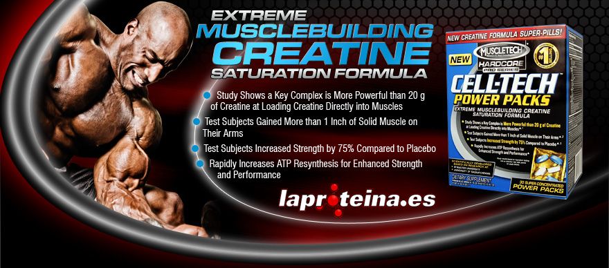 El equipo de investigadores de MuscleTech, presentan su nuevo Cell-Tech Power Packs, como la más innovadora fórmula de suplementación con creatina.