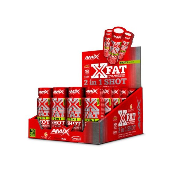 XFat 2 in 1 Shot de Amix Advanced Nutrition es un suplemento en forma líquida de rápida acción que contiene una fórmula 2 en 1 que combina un quemador de grasas con un pre-entreno para mejorar el rendimiento durante el ejercicio físico.