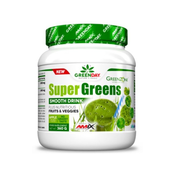 Super Greens Smooth Drink de Amix dentro de su línea más saludable GreenDay es un suplemento en polvo para preparar un delicioso batido verde lleno de energía y antioxidantes.