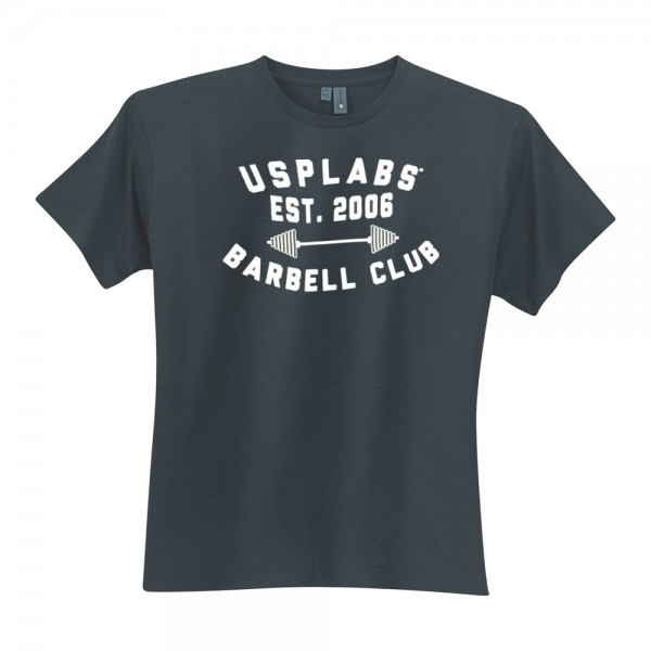 Camiseta original de manga corta de la Marca Americana USPlabs con estampación en color amarillo "Barbell Club"