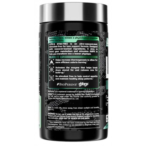 Lipo 6 Stim-Free es un quemador de grasas de última generación libre de estimulantes pero con los compuestos más potentes que te ayudarán poner en funcionamiento tu metabolismo para eliminar la grasa que tanto trabajo cuesta deshacer. Es la elección perfecta para aquellos que desean evitar los ingredientes estimulantes mientras reducen la grasa corporal y pierden peso. También es una gran elección para todos aquellos que les gusta alternar entre productos de pérdida de peso que no utilizan estimulantes y los que si lo hacen.