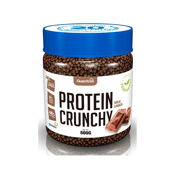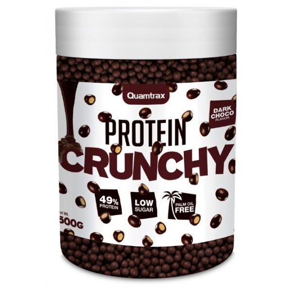 Protein Crunchy de Quamtrax Nutrition son unas deliciosas bolitas crujientes de cereal extrusionado altas en proteínas, recubiertas con diferentes tipos de chocolates según la versión y sin azúcar añadido.