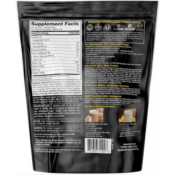100% Whey Protein de la marca Nº1 en todo el mundo Muscletech es un suplemento en polvo que contiene una fórmula proteica ultra-avanzada que combina el concentrado de proteína de suero, los péptidos de proteína de suero y el aislado de proteína de suero de la más alta calidad.