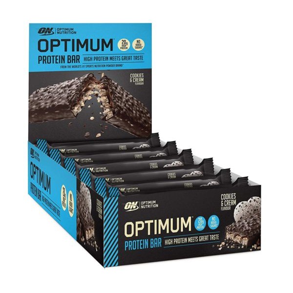Optimum™ Protein Bar es perfecta para llevar a cualquier parte y tomar siempre que necesites una dosis de proteína de calidad, ya que te proporcionará un gran placer a tu paladar, a la vez que te ayuda a mejorar tu rendimiento pero sin comprometer tu aspecto físico o tus objetivos nutricionales.