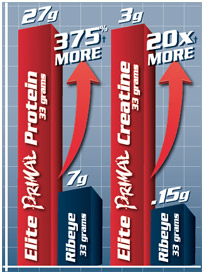 Elite PRIMAL es un 375% más concentrado que la media de una pieza de carne de vacuno.