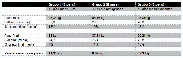 El tercer grupo no tomaba ningún quemagrasas. La investigación estuvo en manos de un equipo formado por dos médicos, un dietista y un entrenador personal.