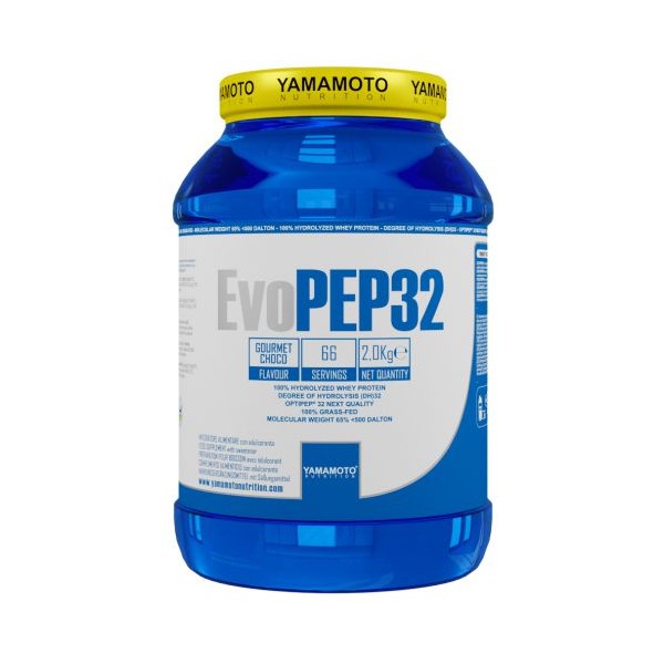 Yamamoto® Nutrition, como empresa pionera en términos de innovación científica, ha tenido el privilegio de presentar EvoPEP32, una forma de hidrolizado proteico derivado del lactosuero, de mayor innovación, que garantiza la absorción más rápida y una digestibilidad extrema, evitando posteriores reacciones alérgicas (al estar constituido por péptidos de dimensiones y peso molecular aún más pequeños que lo convierten en «hipoalergénico») para el atleta que busca maximizar la recuperación post entrenamiento/rendimiento, contrarrestando la aparición de DOMS («delayed onset muscle soreness») y el catabolismo proteico inducido por el entrenamiento, favoreciendo una síntesis proteica potenciada con una reconstrucción muscular más rápida y manteniendo una mayor salud del sistema inmunitario.