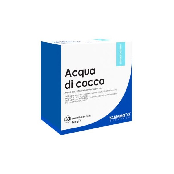 Agua de Coco de Yamamoto® Nutrition es un suplemento en polvo presentado en sobres individuales que proporciona agua de coco liofilizada sin azúcares añadidos, una bebida que permite una rehidratación perfecta y proporciona energía, ya que es una bebida isotónica natural.