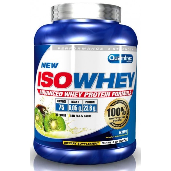 IsoWhey de Quamtrax Nutrition es un suplemento proteico en polvo que contiene una mezcla de aislado y concentrado de suero de leche obtenido por microfiltración de flujo cruzado, un proceso por el que se consigue una proteína que mantiene un valor biológico muy alto, pero con unas bajas concentraciones de lactosa, grasa y carbohidratos.