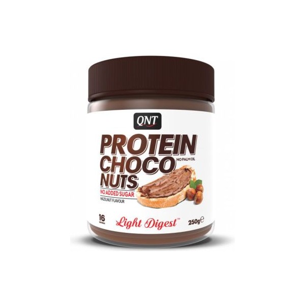 Protein Choco Nuts de QNT es una deliciosa crema de avellanas y chocolate con un 30% de proteína, un 13% de avellanas y un contenido muy bajo de azúcar.