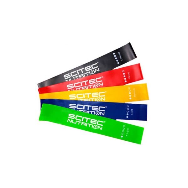 Set de 5 Bandas Elásticas Fitness de Scitec Nutrition es un pack de 5 bandas elásticas con diferentes resistencias de excelente calidad, muy resistentes y duraderas, diseñadas para entrenar la fuerza y la flexibilidad.