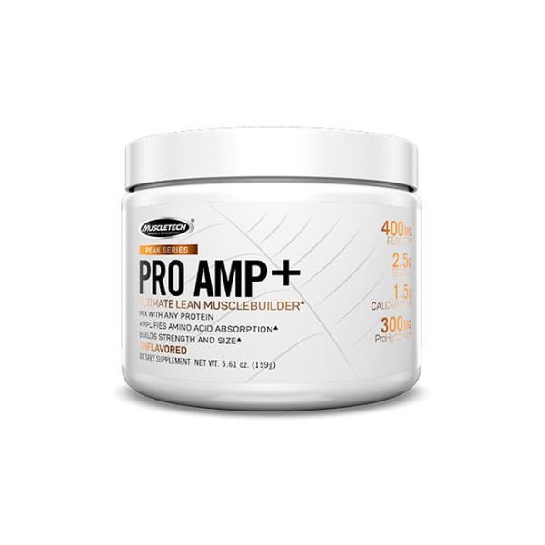 Meet your protein powder’s new best friend, Peak Series Pro Amp+. This unflavored musclebuilder can be mixed with any protein to amplify amino acid absorption while building strength and size. It can also be enjoyed on its own pre-workout. MuscleTech®’s Peak Series Pro Amp+ features Peak ATP®, betaine and creatine to significantly increase strength and musclebuilding power. What's more, the formula delivers scientifically studied ProHydrolase® to assist protein digestion and amplify amino absorption by 20%.