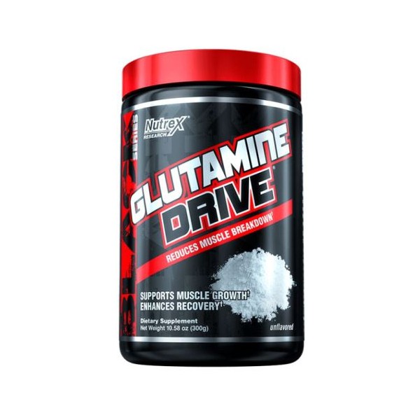 Glutamine Drive de Nutrex Research es un suplemento en polvo que contiene el 100% de glutamina de gran calidad y sin sabor para que la puedas agregar fácilmente a cualquier bebida después del entrenamiento para mejorar en gran medida la reparación muscular y estimular su cuerpo para un mayor crecimiento del tejido muscular.