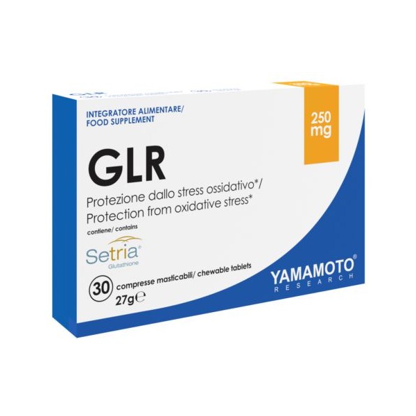 GLR® de Yamamoto® Nutrition es un suplemento en tabletas sublinguales de rápida disolución que proporciona 250 mg de glutatión reducido (Setria® Glutathione), enriquecido con vitamina C y selenio.