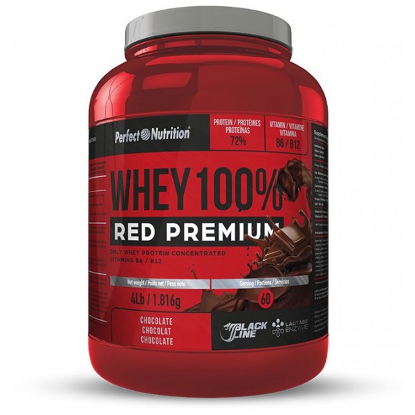 Whey 100% Red Premium de Perfect Nutrition es un suplemento en polvo que contiene únicamente concentrado de proteína de suero de leche microfiltrado de la más alta calidad enriquecido con lactasa (enzima que ayuda a asimilar la poca lactosa que contiene) y vitaminas B6 y B12.