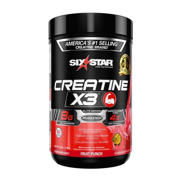 Creatine X3™ de Six Star® Pro Nutrition es un suplemento en polvo que contiene una combinación de 8 gramos de creatina con BCAAs y otros aminoácios para apoyarte en la mejora de la fuerza, el desarrollo de tu masa corporal y mejorar la recuperación después del entrenamiento.