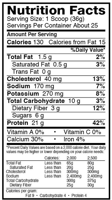 21 g Protein - 4 g BCAAs - 2 g Leucine - 130 Calories