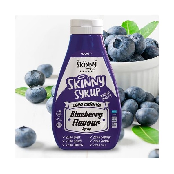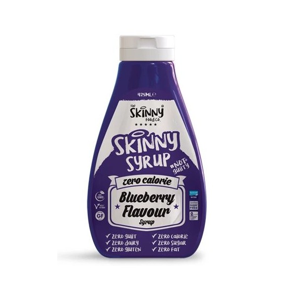 El nuevo sirope Skinny Syrup Blueberry de Skinny Food tiene todo el sabor del sirope de arándanos convencional, pero sin prácticamente calorías, ideal para acompañar toda clase de postres, batidos tortitas y cualquier receta dulce que se te ocurra, que podrás tomar a todas horas sin sertirte culpable por ello.