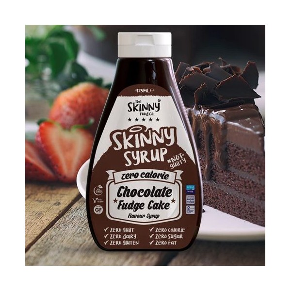 El nuevo sirope Skinny Syrup Chocolate Fudge Cake de Skinny Food tiene todo el sabor de un sirope de pastel de chocolate fudge convencional, pero sin prácticamente calorías, ideal para acompañar toda clase de postres, batidos tortitas y cualquier receta dulce que se te ocurra, que podrás tomar a todas horas sin sertirte culpable por ello.