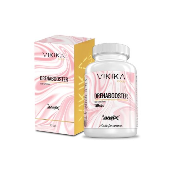 DrenaBooster de la nueva línea Vikika Gold de Amix Nutrition es un suplemento en cápsulas destinado especialmente para mujeres activas y conscientes de la importancia de seguir unos hábitos saludables que contiene un complejo especial de extractos diuréticos naturales, minerales y vitaminas en una formula única que combina hasta 12 componentes de la máxima efectividad para eliminar de forma rápida el exceso de agua corporal.