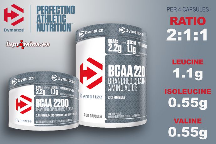 - Con 1.100 mg de L-leucina, 550 mg de isoleucina y 550 mg de valina por dosis.