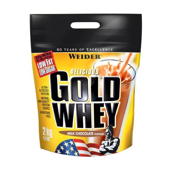 Gold Whey es una proteína súper-ventas en toda Europa. Se trata de una proteína obtenida mediante un cuidadoso proceso de ultrafiltración para conseguir una proteína de la máxima calidad, de muy fácil digestión y que llega rápidamente al tejido muscular. Al consumirla con agua conseguimos absorberla totalmente en tan sólo 20 minutos.