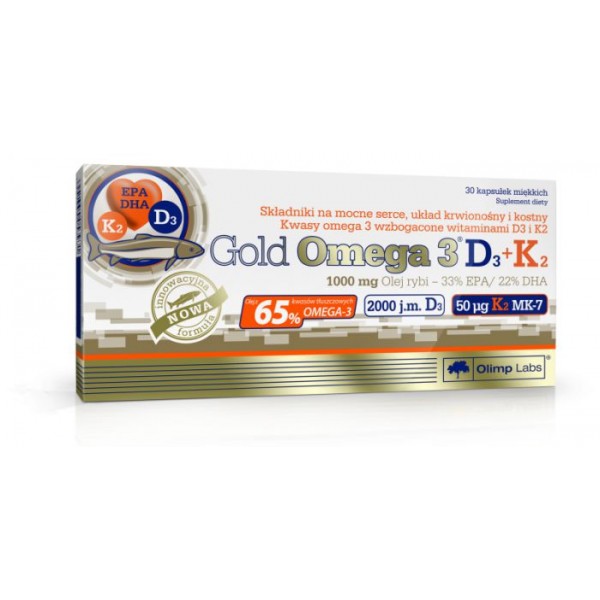 Gold Omega 3 D3 + K2 de Olimp Sport Nutrition es un suplemento nutricional en perlas que proporciona ácidos grasos Omega 3 enriquecido con vitamina D3 y K2 diseñado específicamente para los deportistas más exigentes preocupados por su salud.
