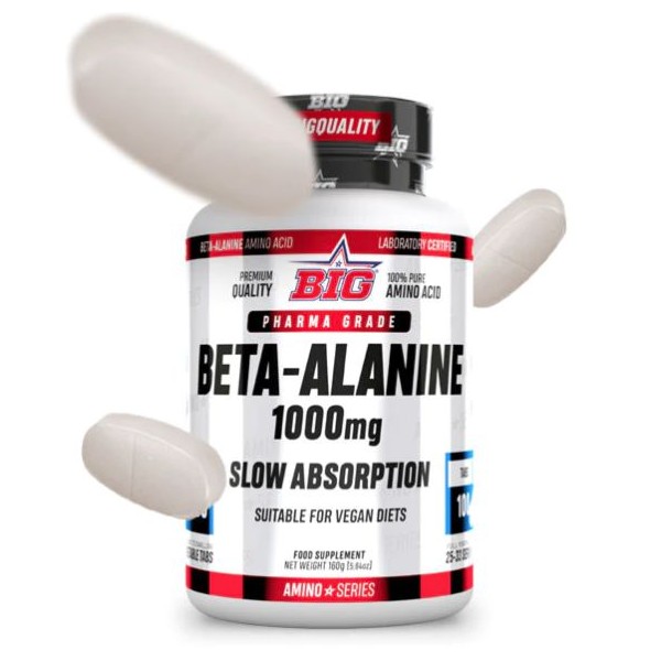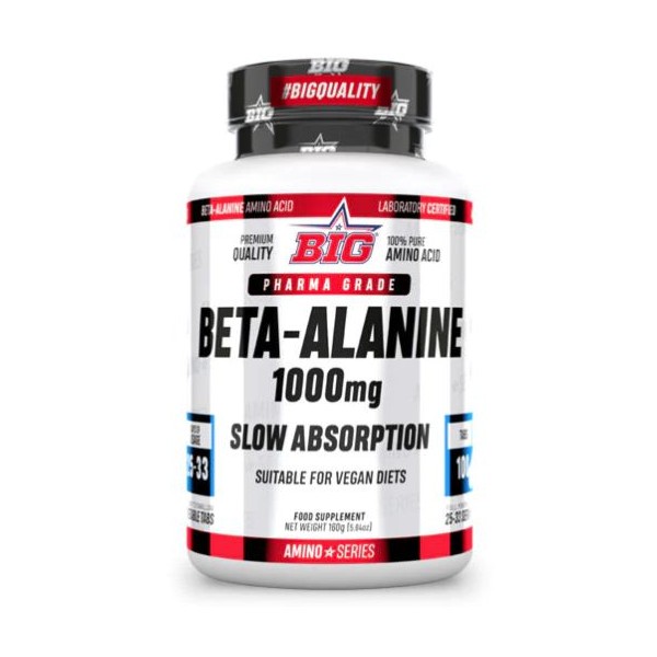 Beta Alanine de Big es un suplemento en tabletas que te proporciona 3.000 mg de beta alanina por dosis de 3 tabletas.