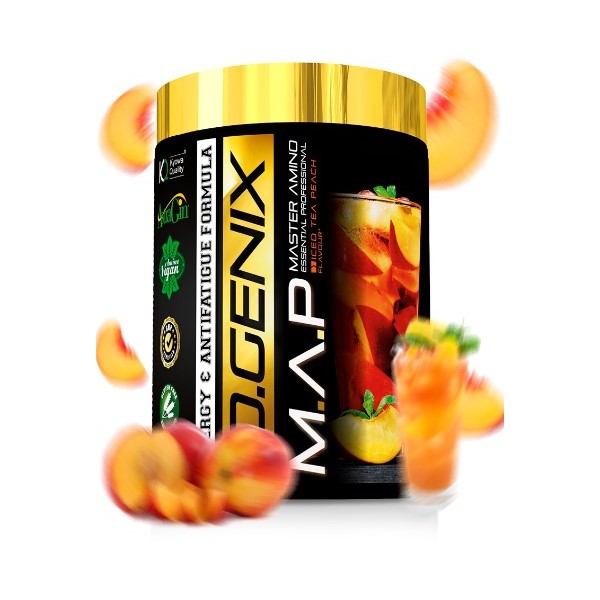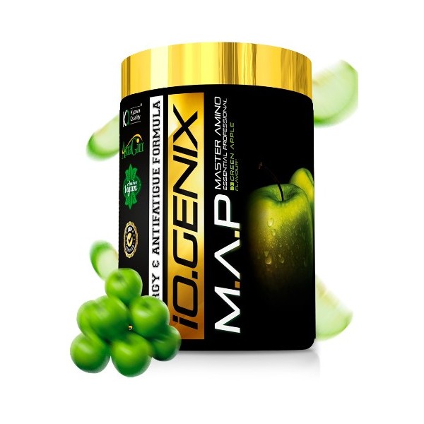 M.A.P Master Amino Essential Professional de IO.Genix es un suplemento en polvo que contiene una combinación maestra de 8 aminoácidos esenciales con calidad Kyowa®, con Astragin® y vitamina B6, con el fin de ser el soporte ideal para deportistas que sufren un intenso desgaste muscular.