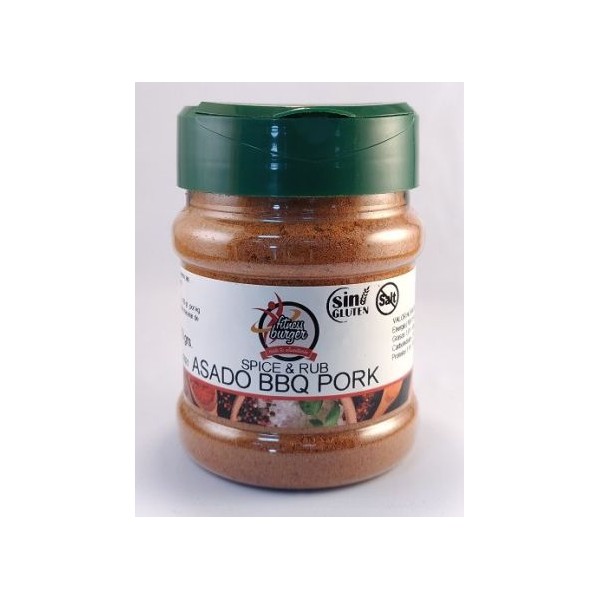 Sabor asado barbacoa pork: pimentón, pimientas, cayena, ajo, jalapeños, comino, azúcar de caña, comino, romero.