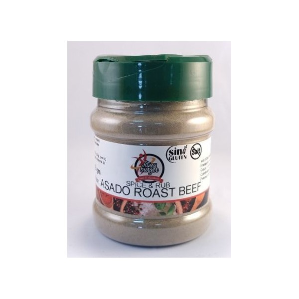 Sabor asado roast beef: ajo, pimientas, comino, orégano, azúcar de caña, nuez moscada, tomillo, mejorana laurel, albahaca, romero.