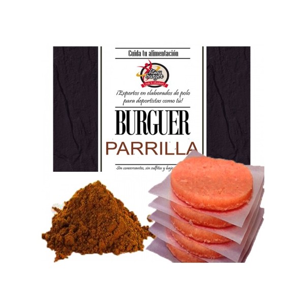 Fitness Burguer pollo parrilla (5 unidades de 100 gramos). Hamburguesa de pollo que combina una composición apta para las dietas deportivas con todo el sabor original de las parrilladas. Es muy baja en grasas y carbohidratos, mientras que aporta un importante 21.5% de proteínas de calidad.