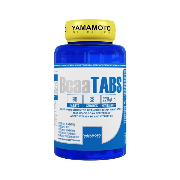 Bcaa TABS de Yamamoto® Nutrition es un suplemento en tabletas que proporciona aminoácidos de cadena ramificada con una combinación de leucina, isoleucina y valina en una proporción de 2:1:1, que además está enriquecido con las vitaminas B1 y B6.