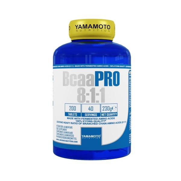 Bcaa PRO 8:1:1 Kyowa Quality® de Yamamoto® Nutrition es un suplemento en tabletas que proporciona aminoácidos de cadena ramificada con una combinación de leucina, isoleucina y valina en una proporción de 8:1:1 y producidos por Kyowa®, que además está enriquecido con las vitaminas B1 y B6.