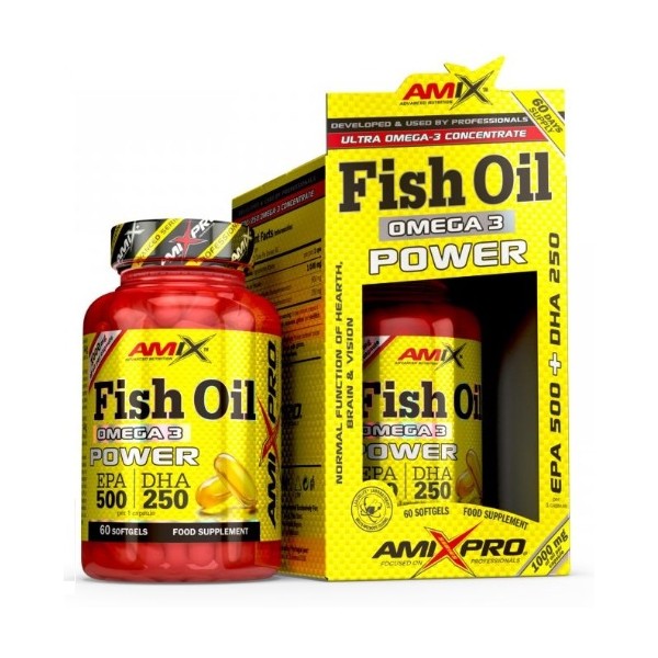 Fish Oil Omega 3 Power de Amix™ Advanced Nutrition es un complemento alimenticio en perlas que proporciona 1.000 mg de aceite de pescado alto en omega 3.