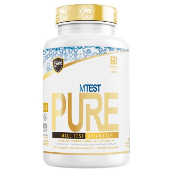 MTest Pure de MTX Pure Lab es un suplemento en cápsulas que contiene una fórmula estimulante hormonal para hombres que contiene extractos vegetales muy populares como el ginseng koreano, la raíz de maca, el ginkgo Biloba, el ajo, la semilla de fenogreco, la raíz de espárrago, la hierba de berro, el brócoli, la avena sativa y la piperina de la pimienta negra.