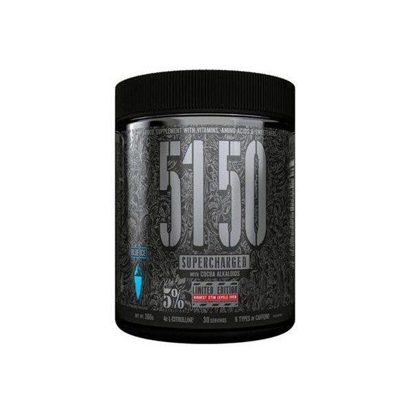 5150 Supercharged de 5% Nutrition es la edición limitada del súper potente pre-entreno 5150 que te proporcionará la misma estimulación y bombeo muscular que la versión convencional pero que ahora viene cargado con alcaloides da cacao (Cocobuterol) además de los 6 tipos diferentes de cafeína.