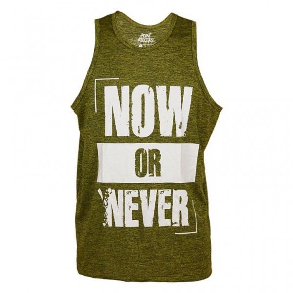 Su color verde en contraste con el lema "Now or Never" en color blanco, junto a su agresivo y moderno diseño la convierten en una camiseta que te gustará llevar. Úsala en el gimnasio o para vestir de un modo "sport" y enseña lo que hay en ti.