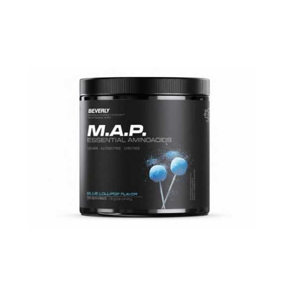 M.A.P. Essential Aminoacids de Beverly Nutrition es un suplemento en polvo que contiene una combinación de aminoácidos esenciales y vitamina B6 con una óptima solubilidad y biodisponibilidad.