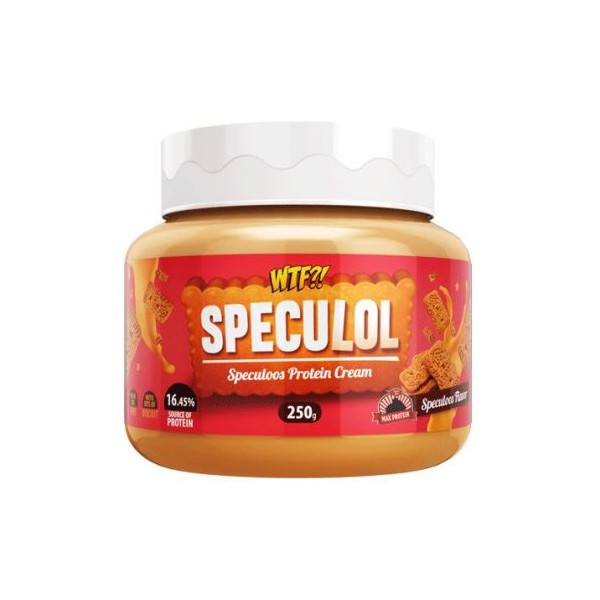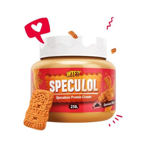 WTF?! Speculol es una deliciosa crema con sabor a galleta de canela y mantequilla que te sorprenderá desde el primer bocado. WTF?! Speculol tiene un alto contenido en proteínas, y no contiene aceite de palma.