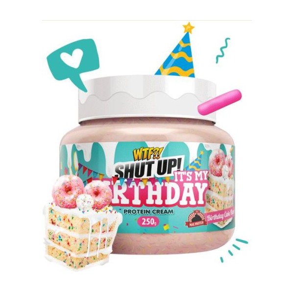 WTF?! Shut Up Its My Birthday es una nueva deliciosa crema para untar, que te permitirá darte unos suculentos caprichos sin renunciar a seguir una dieta sana y baja en calorías.