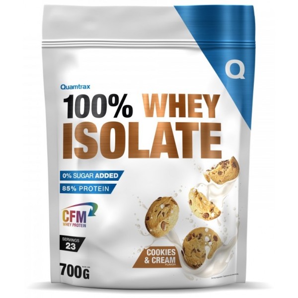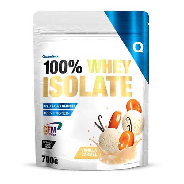 Whey Protein Isolate de Quamtrax Nutrition es un suplemento proteico en polvo que contiene 100% de aislado de proteína de suero de leche obtenido por microfiltración de flujo cruzado con una disolución y unos sabores inigualables.