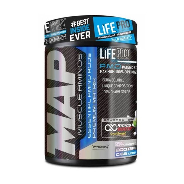 MAP Muscle Aminos de LifePro Nutrition es un suplemento en polvo que contiene una matriz especial de aminoácidos científicamente estudiada para conseguir un desarrollo y crecimiento muscular perfecto y rápido.