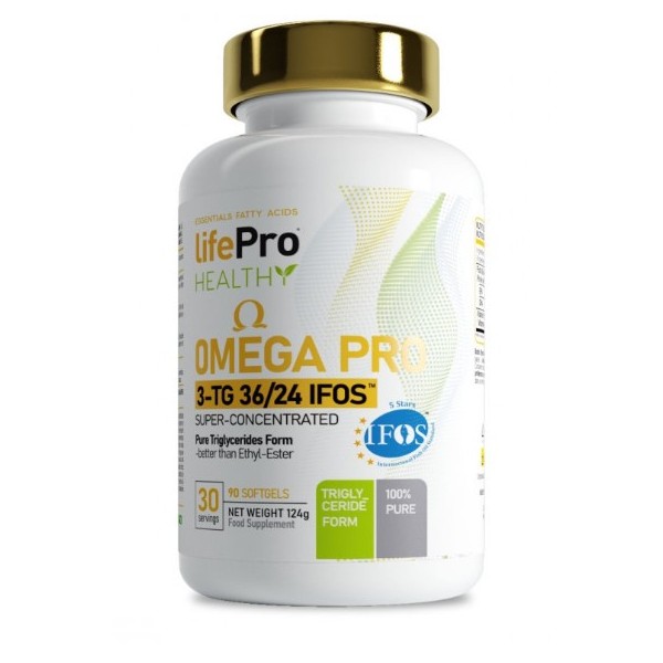 Omega PRO de LifePro Nutrition es un suplemento en perlas que contiene ácidos grasos Omega 3 del tipo EPA y DHA en forma de triglicéridos (su forma más biodisponible, mejor que etil-éster) y con la certificación IFOS de 5 estrellas que garantiza la más alta calidad de Omega 3.