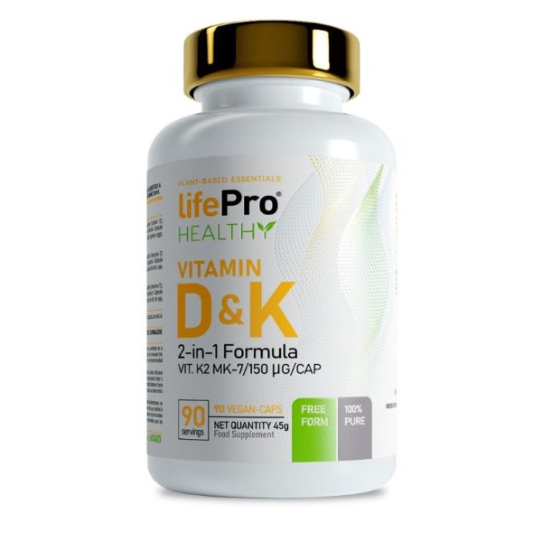 Vitamin D&K de LifePro Nutrition es un suplemento en cápsulas que contiene una potente combinación de vitamina K2 MK-7 (menaquinona) y vitamina D (colecalciferol).
