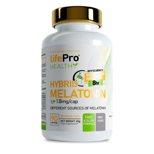 Hybrid Melatonin de LifePro Nutrition es un suplemento en cápsulas que proporciona 1,8 mg de melatonina de liberación híbrida (rápida y prolongada) con un efecto de hasta 8 horas de duración para conseguir un sueño profundo, sostenido y reparador.
