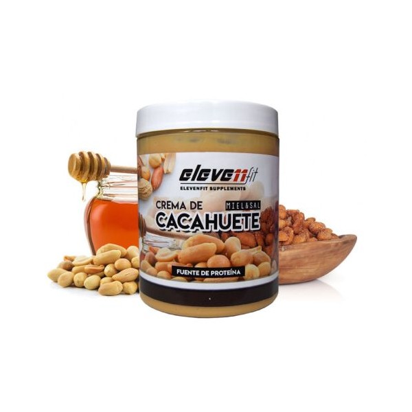Crema de Cacahuete Miel y Sal de ElevenFit Supplements es una crema de cacahuete con sabor a miel y sal perfecta para complementar nuestra dieta consumiéndola directamente o añadiendola a todo tipo de recetas o postres.